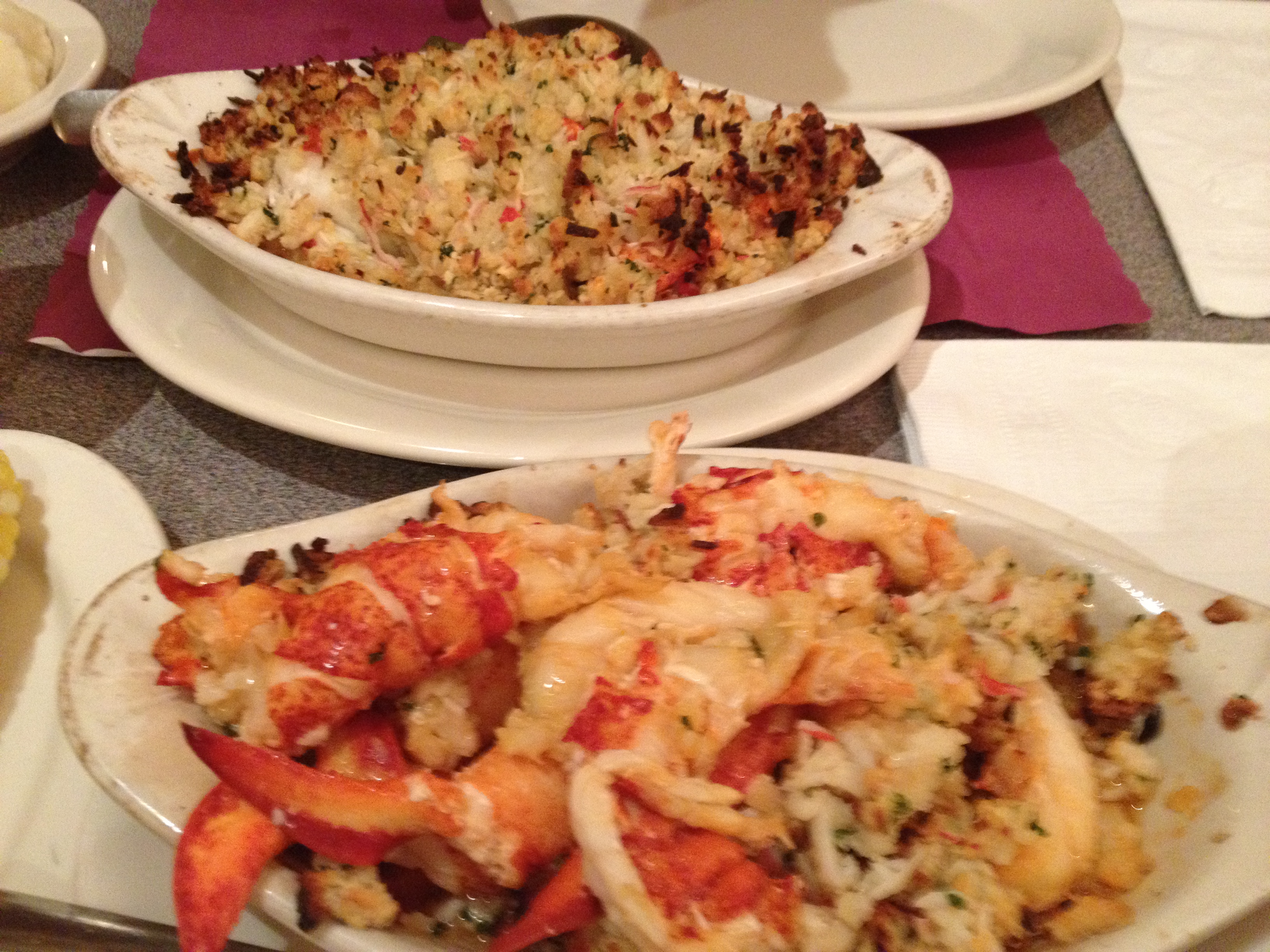For our main courses as you can see above we both grabbed the Lazy Man’s Lobster with the crabmeat stuffing.   The stuffing was good.   The lobster was succulent and flavorful.   I also ordered a corn on the cob as a side with my lobster which was one of the best corn on cob’s I have ever tasted.