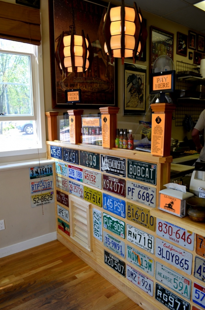 The place is little and basic. No tables, take out only. Fine, you know what you are getting into. He’s got some cool license plates in there for decor. Everytime I go in the workers greet me with a hello and thank me when I leave. A huge plus. I don’t want my ass kissed but I do want to feel that they appreciate my business. The menu consists of Portobello, Beef, Chicken, and Chorizo Burritos. You can pretty much ad every side you can think of to a burrito from lettuce to guacamole. There is a small charge for everything except the lettuce. Everything is very reasonable especially for the Vineyard. The most expensive addition is the guacamole and the special corn and chipolte salsa at a whopping .75 cents. The burritos are six bucks plus the additions. One of the cool features is the hot sauce feature. He asks how hot do you want it asks for a number from 1 to 10. You say and remember your number so in case next time you want kick it up a notch or tune it down. I usually go with the Chorizo which is a slightly spicy Mexican Sausage and hot sauce number 4. If I get the beef I will kick it up to number 6.