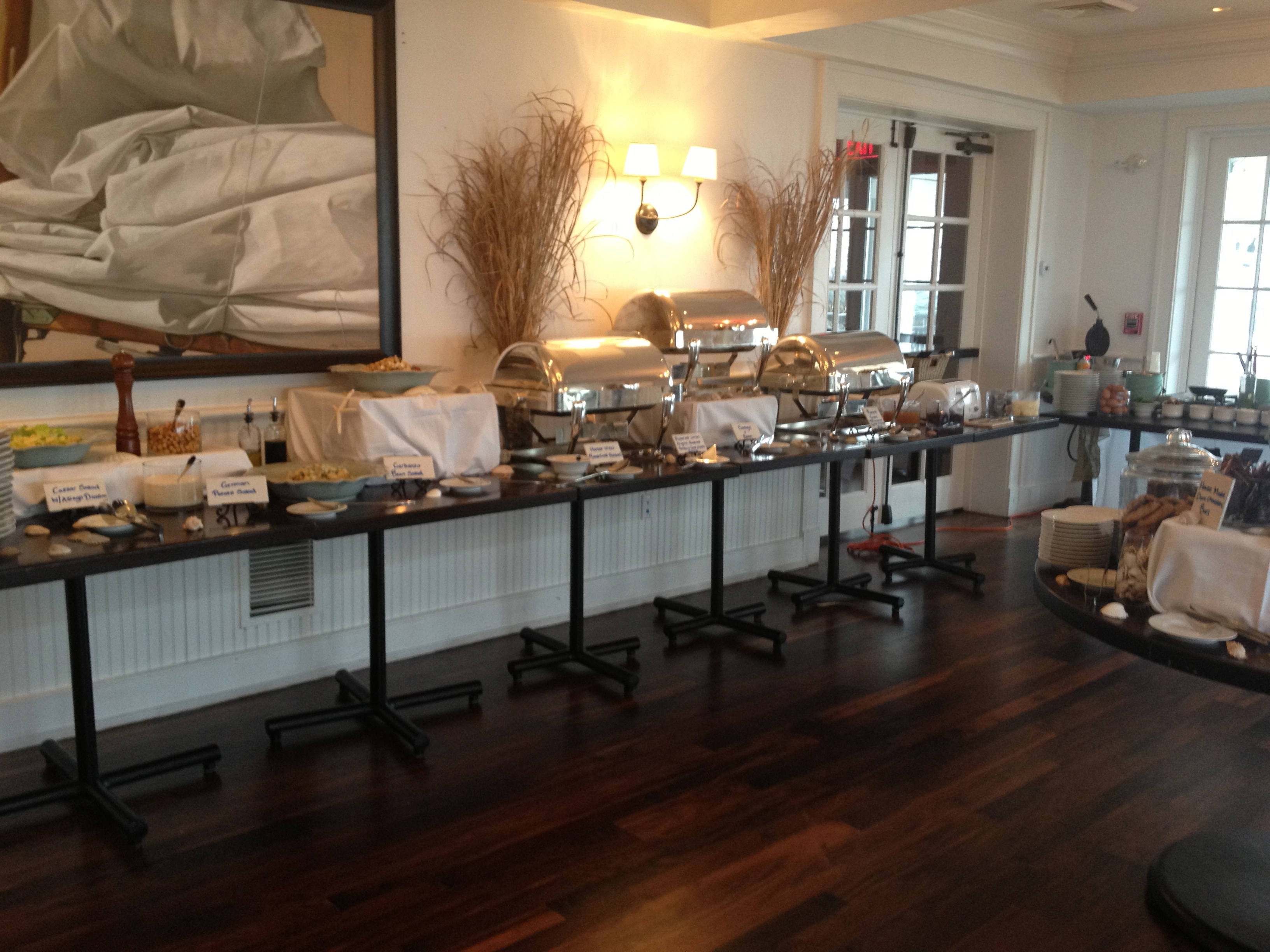 “Thank you for another great season and we will see you in the Spring” How many times this winter have you heard this message when you call a restaurant ? In other words we are enjoying Florida or the Carribean while your sorry asses are freezing on the Vineyard and have no where to eat. I’m really getting sick of hearing that message. When deciding on a place to go to breakfast this morning that was the message I heard from 1. Black Dog 2. State Road and I couldn’t believe it 3. Cafe Moxie. Cafe Moxie just re-opened this year but the message I got this morning said they were closed for renovations. Come on give me a break. Seems like more and more island restaurants are closing more during the winter or just closing period (RIP – Seasons). Oh yea, Linda Jeans – closed. Art Cliff – forget about it. That leaves me with Lucky Hanks and the airport. We were on our way to the airport when a thought about maybe the Harbor view Hotel Brunch popped into our heads. I checked their website and to my delight the brunch was opening at 10 AM.