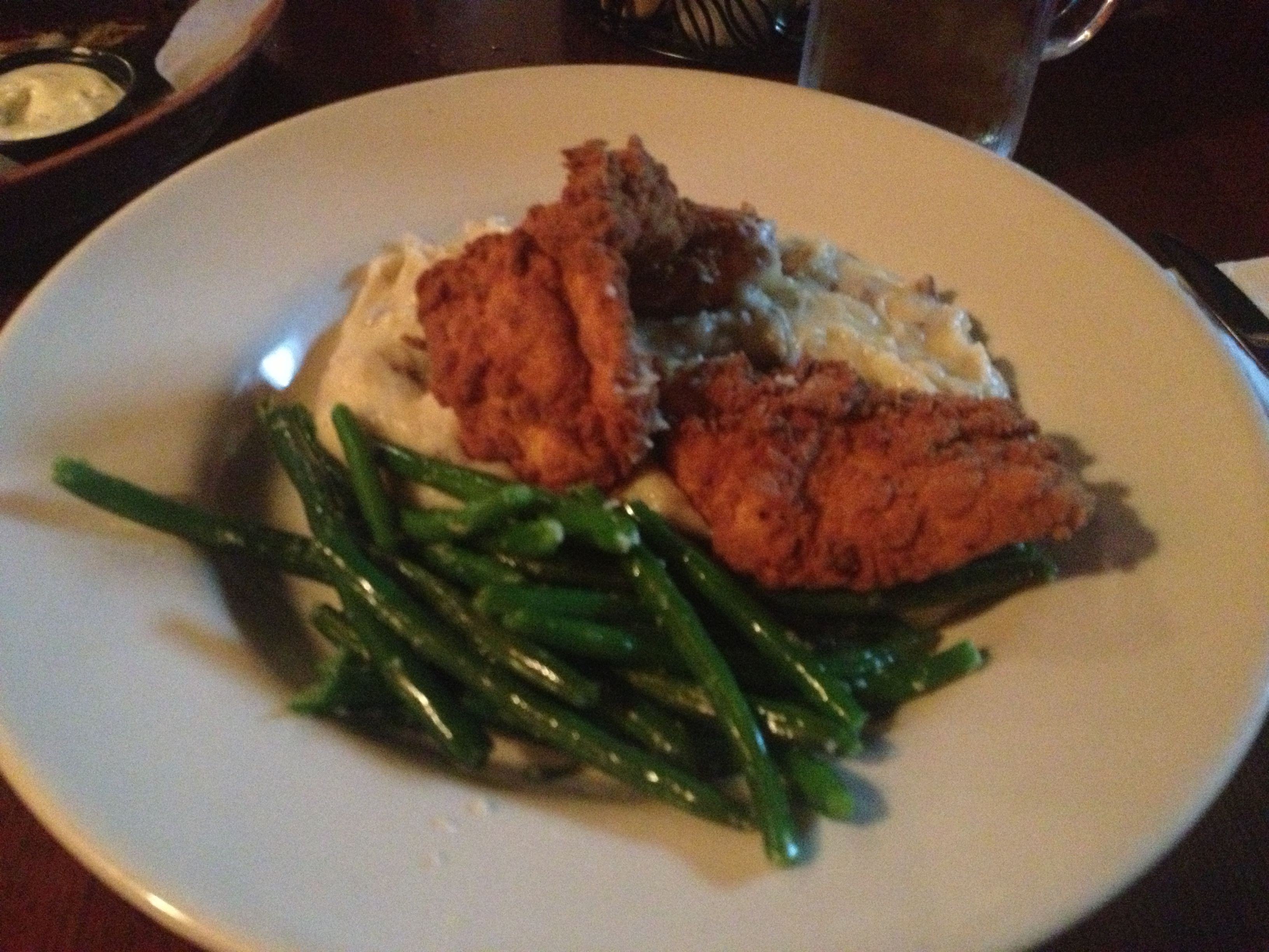 the NFC  – New Fried Chicken.  My girl got the reuben.  The Chicken was pretty good and seasoned nicely.  Not enough chicken and wayyyy too much mashed potatoes, but nevertheless good.  The Reuben was good.   Always is good there.  Fries are good.   It’s pub food.  Guess that’s why they call it The Newes from America Pub.